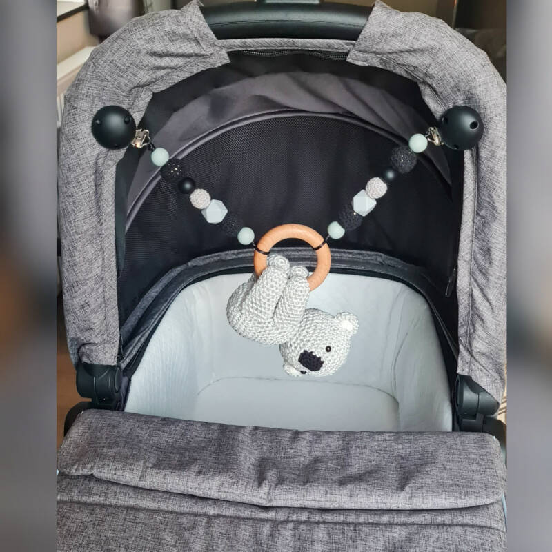 Wagenhangers hebben één clip en kunnen verticaal bevestigd worden aan een wandelwagen of maxi cosi.